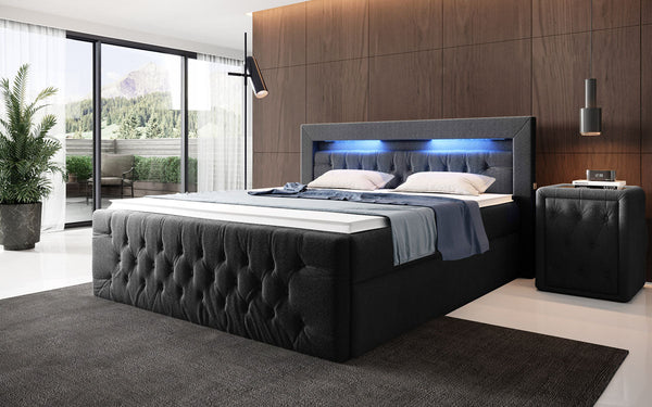 | Lieferumfang | Boxspringbett mit Matratze, Topper und Kopfteil |